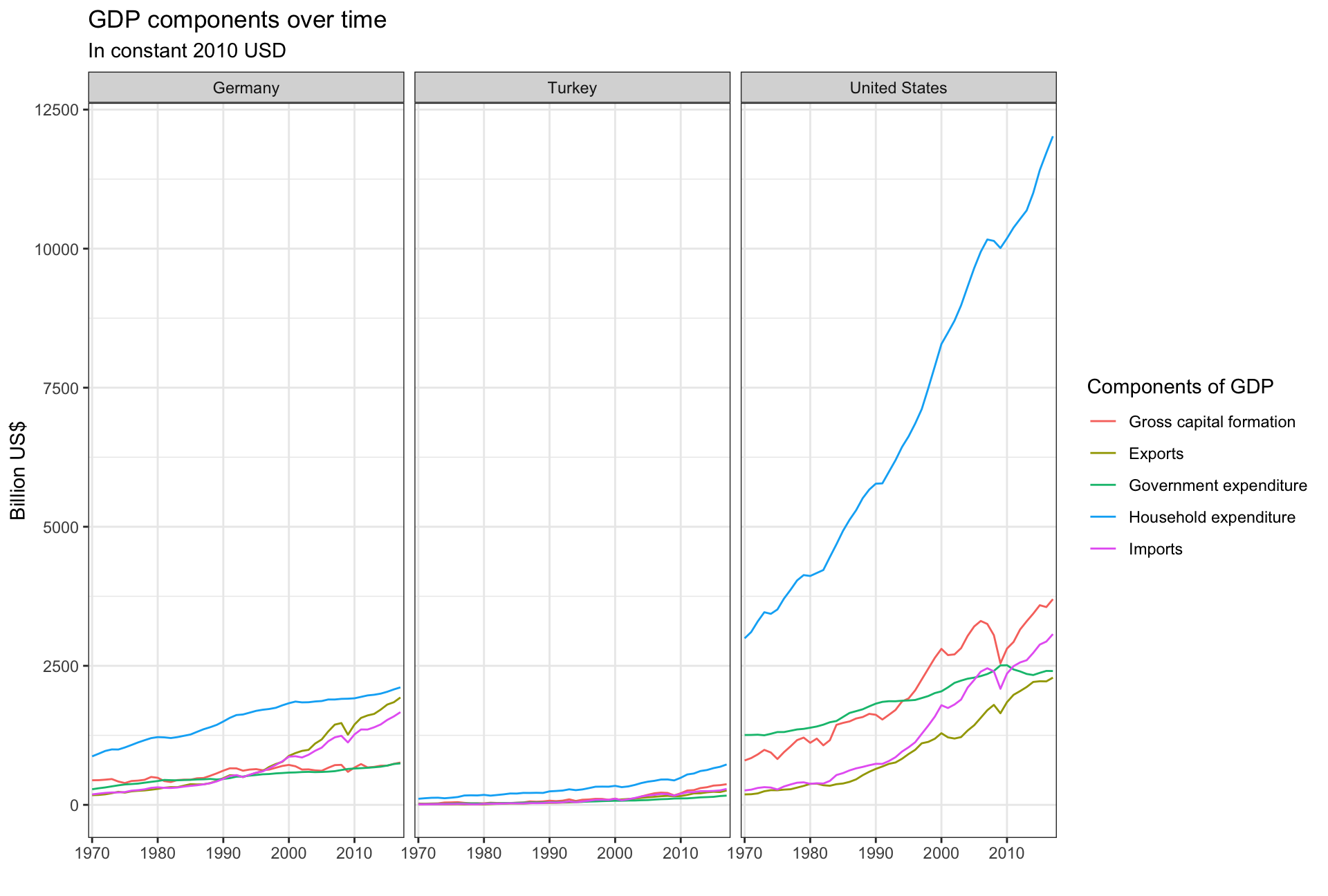 plot1$IndicatorName <- factor(plot1$IndicatorName, levels = c("Gross capital formation", "Exports", "Government expenditure", "Household expenditure", "Imports"))